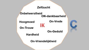 Die vrucht gaat groeien als de C van Christus in ons leven, het gericht zijn op Hem, ons eigen Ik, dat gericht zijn op ons eigen belang (ego-ïsme), overschaduwt.