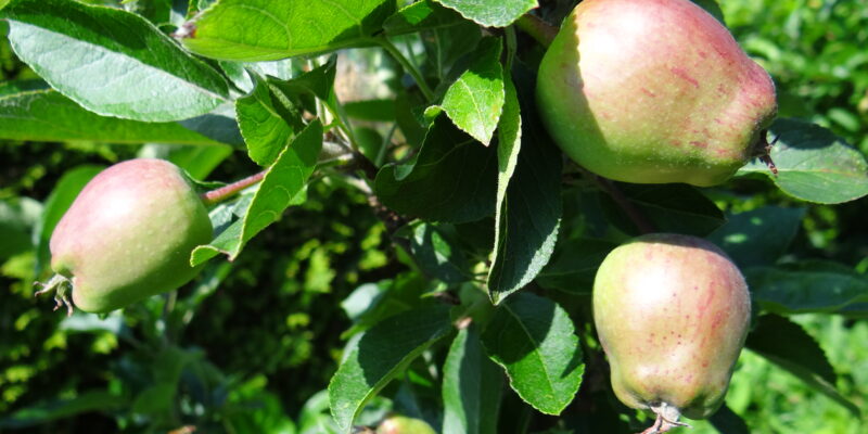 Naar buiten kijkend zie ik appelbomen, bezig vrucht te dragen tot in de herfst de vruchten zullen rijpen.